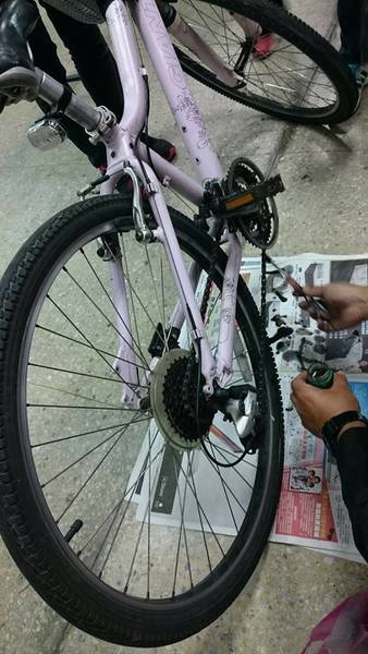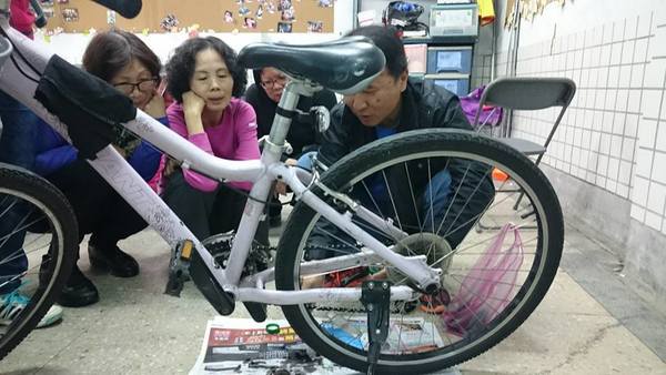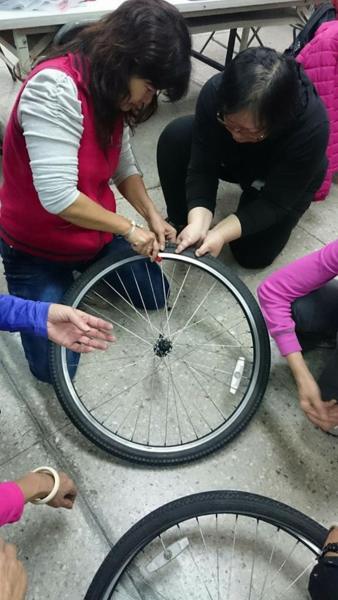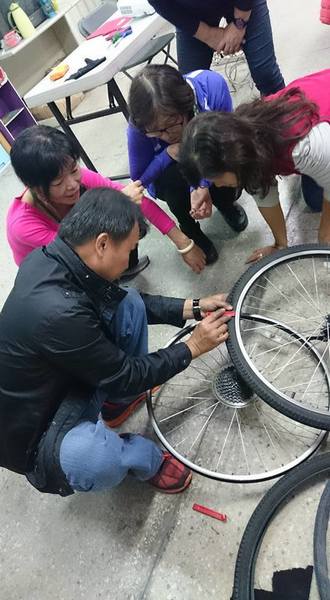 在老師的課程中,愛騎單車的人,一定要學會如何保養和修車和換車胎,因為不是每個人都能隨時一起陪騎車,當〝鏈條脫落〞時不能指望別人幫你修車,而是得要自立自強。