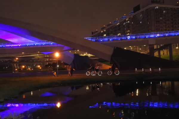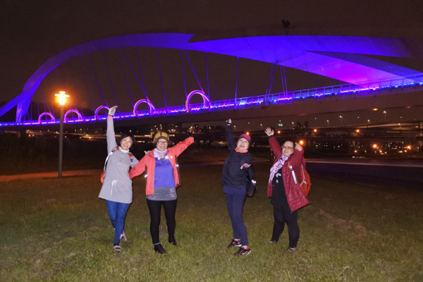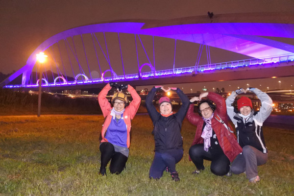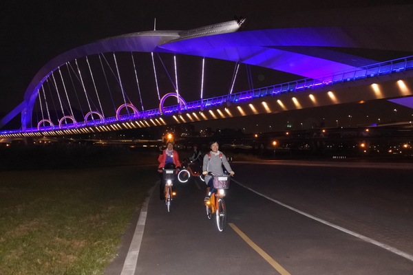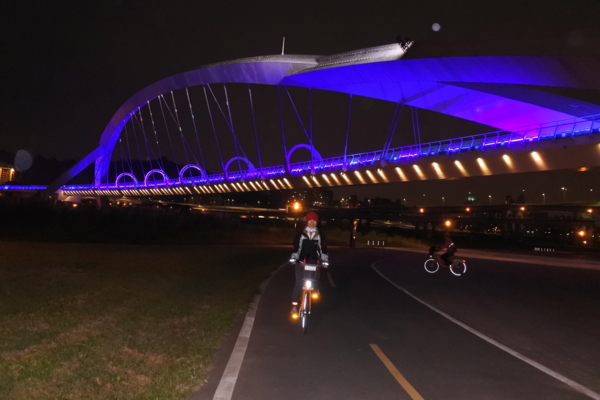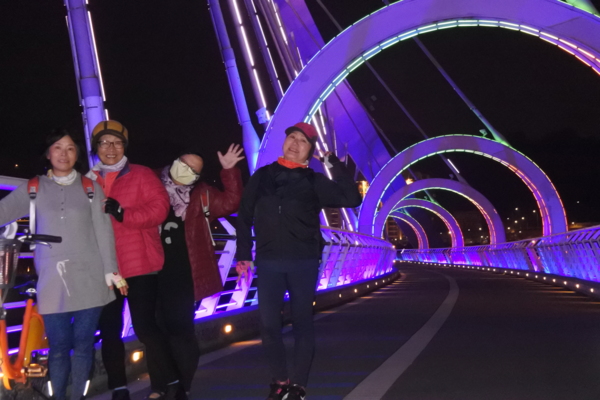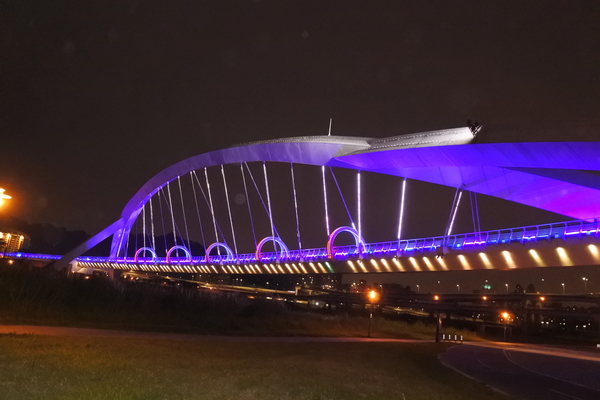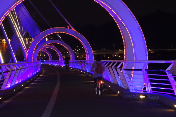 夜晚的陽光橋,有如穿越時光、帶著科技與夢幻變化的拱圈隧道,十分美麗!