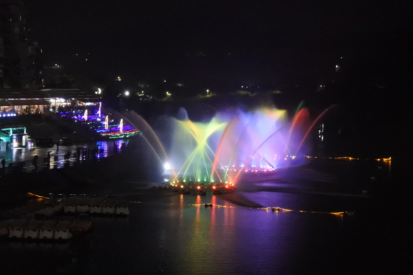 雖然飄雨了~~不減興致,加速踩踏到碧潭看水舞秀,水舞搭配多彩燈光和音樂,兼具視覺及聽覺雙重饗宴。