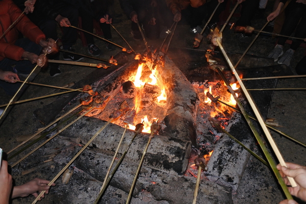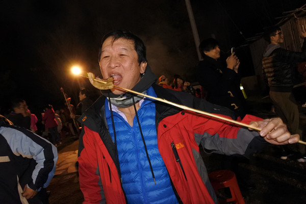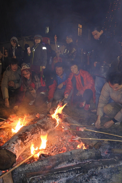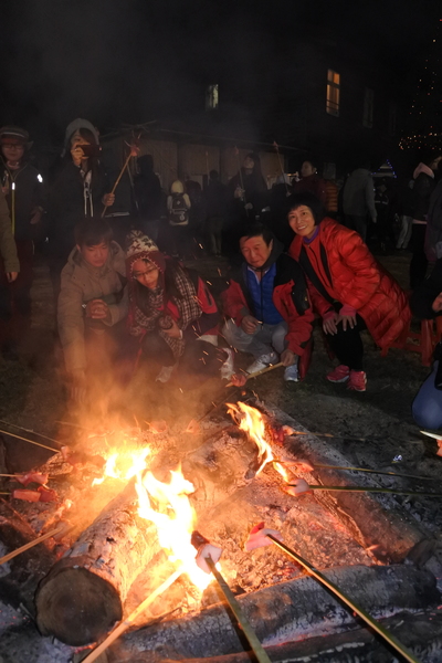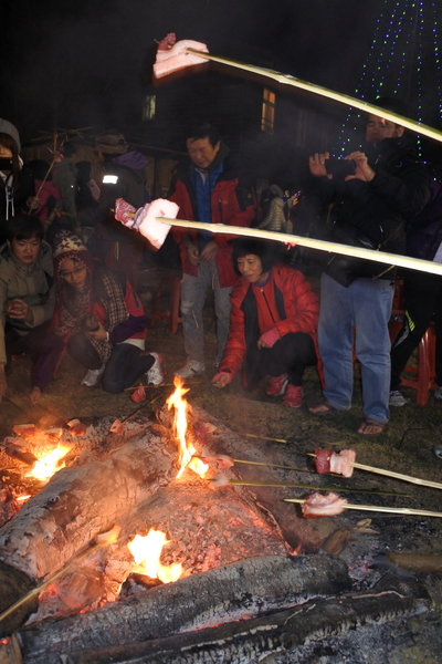 在部落裡滿天星斗的夜空下,圍著火爐取暖烤山豬肉,聞著香氣,吃糯米飯 &山豬肉~~ 忘記了寒冷....真是令人難忘的體驗