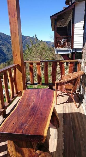 迦南小木屋是司馬庫斯部落中,視野最遼闊、價格也是最貴的,沿著小路蜿蜒而上,是整片的森林,站在獨立的觀景陽台平上,前方看,是無盡的藍天白雲