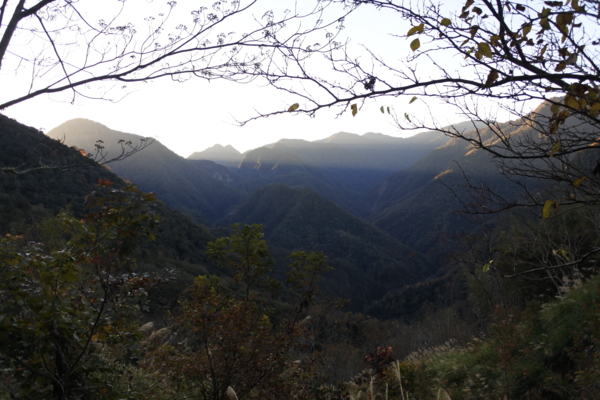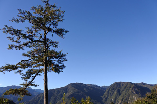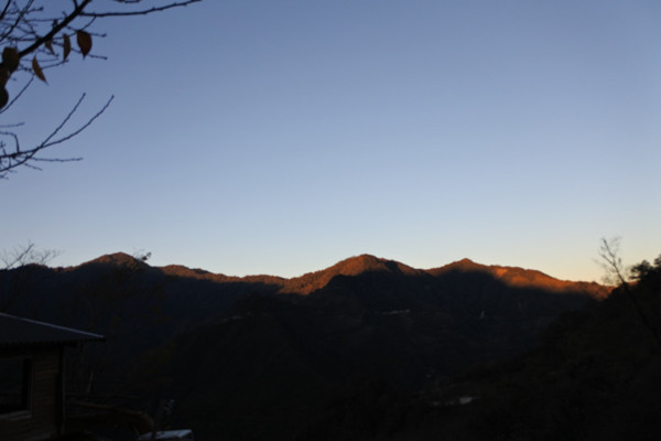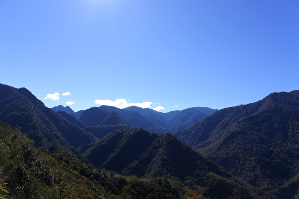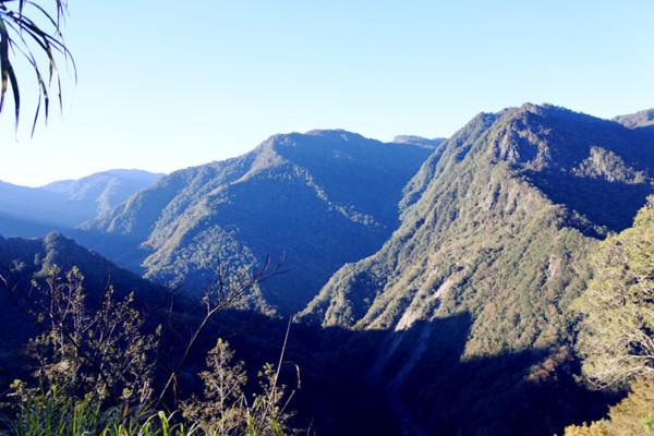 層疊的山景擋住初醒的陽光 .. 沿途有美麗的樹林..遠方還有雲海~