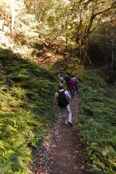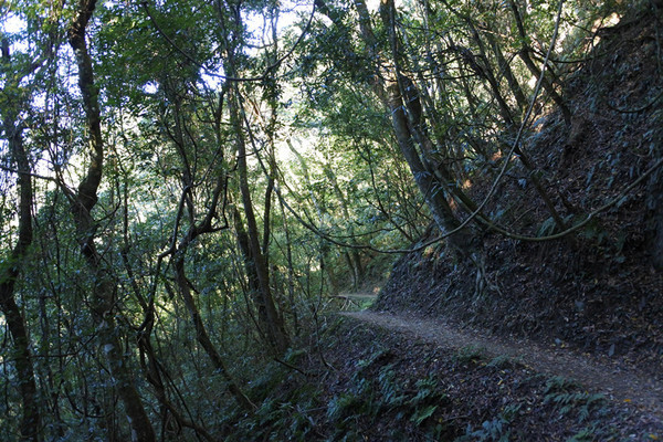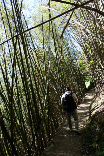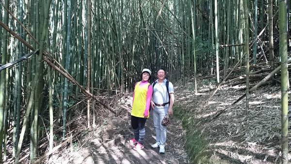 經過桂竹林,地上滿是高大聳立的桂竹所飄落的竹葉,一路走起來十分鬆軟舒服