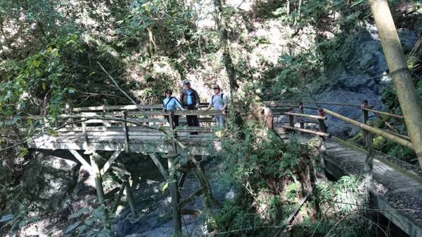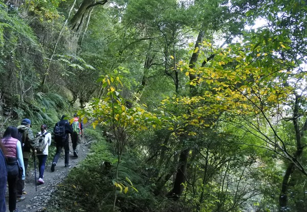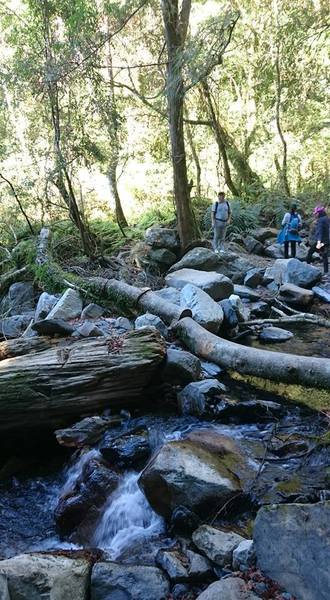 步道不時出現瀑布,有大有小,小的成水道,大的成溪流,味道溪在早期是原住民族的夏天冷藏庫,專門保存肉類食物