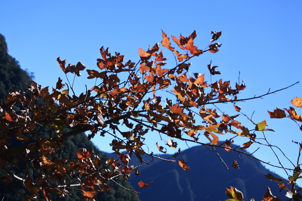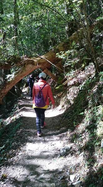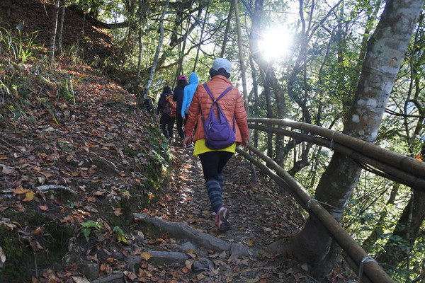 10:30比預定時間早回到登山口 。回程走另外一條路小徑。兩旁有非常漂亮的楓香