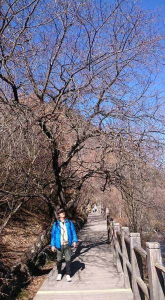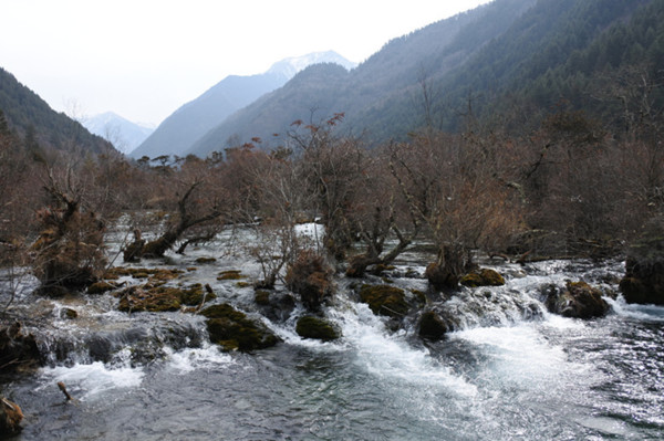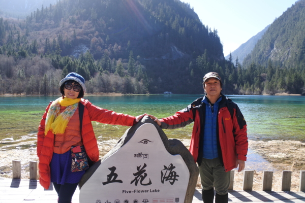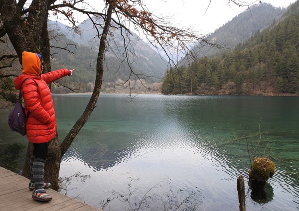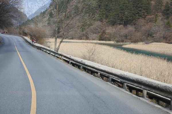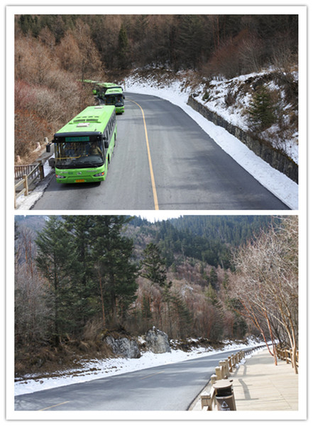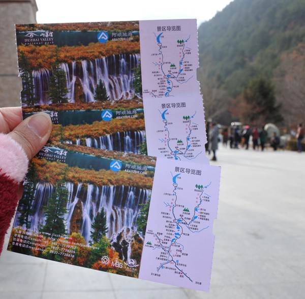 8:30從酒店出發,搭車約1 小時抵達九寨溝風景區,到達九寨停車場後,要走一段距離才到九寨溝入門查票口,也許是淡季,沒有大排長龍的人海,進溝後,換環保車遊覽