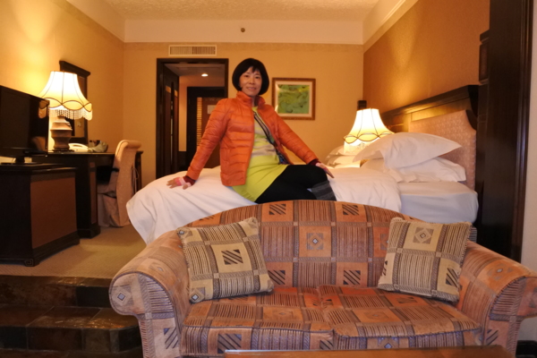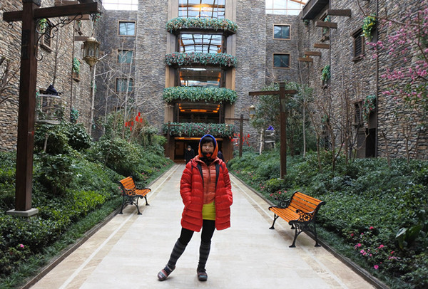 到成都第2天晚上,入住九寨縣九寨天堂洲際酒店,進入時彷彿在走迷宮,大廳内開放式庭園擁有10000平方米的生態大花園(好冷喔沒有暖氣),有綠樹紅花、小橋流水,天鵝、孔雀、鴛鴦等多種動物悠然嬉戲。