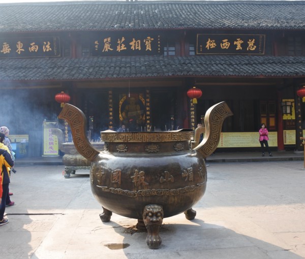 離開樂山大佛, 往報國寺和遊尋幽訪勝,位於峨嵋山麓,是峨嵋山最大的一座寺廟,又是登山的大門,是峨嵋山的起點。坐電瓶車到伏虎寺,寺內殿宇隱於叢林之中,故有密林隱伏虎之稱