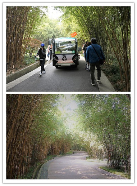 不搭遊園車徒步,走熊貓展示園區,道路兩側種滿了許多綠竹,綠蔭夾道讓人覺的舒服。