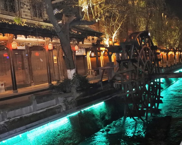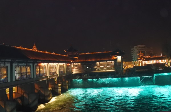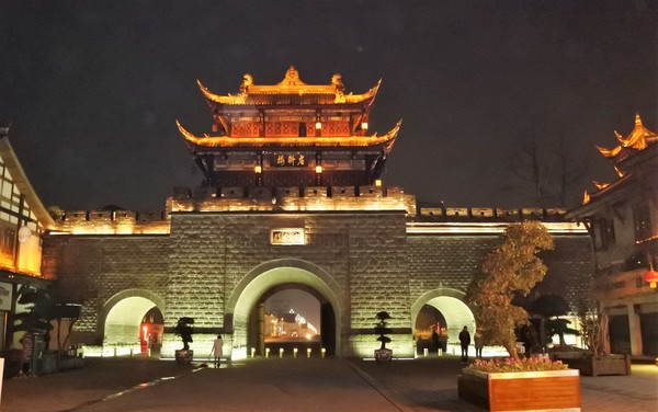 今晚穿行在被時光雕刻的古鎮,南橋商街夜景很漂亮,爬上仿古城牆看岷江在彩燈的照映下江水顯得璀璨美麗