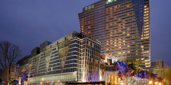 前方聳立高樓都江堰中心假日酒店是今晚下塌的飯店---