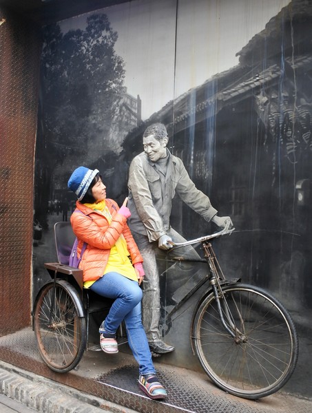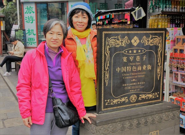 成都遺留清朝古街道,寬窄巷子由寬巷子、窄巷子、井巷子平行排列組成寬窄巷子,有點類似我們台灣的老街, 今天是星期六,遊客非常多,多到就是人看人---兩旁店家賣吃,賣紀念品, 酒吧與餐廳 !