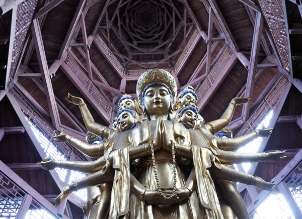 佛是一座山 、 山是一尊佛 。為樓十三層 、 像閣與山齊--回首--佛已在心中座