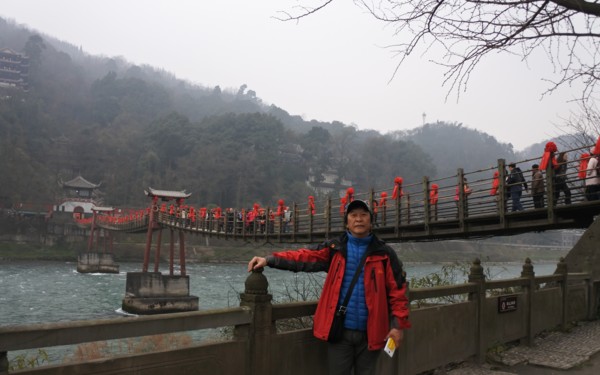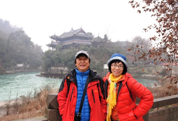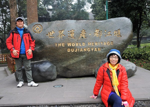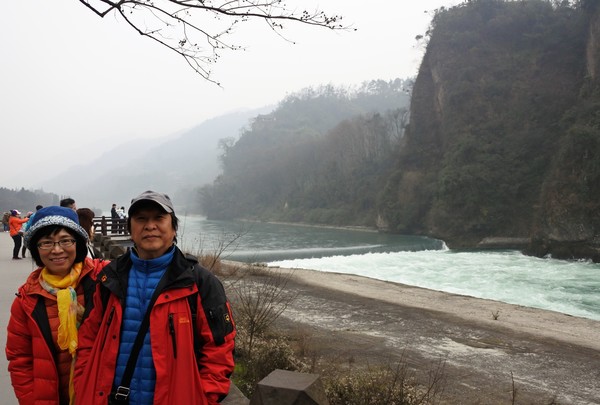 坐環保車到都江堰。觀賞都江堰三主角--魚嘴,飛沙堰,寶瓶口。。魚嘴是修建在岷江中心的分水堤壩,把洶湧的岷江分隔成外江和內江,外江排洪,內江引水灌溉。