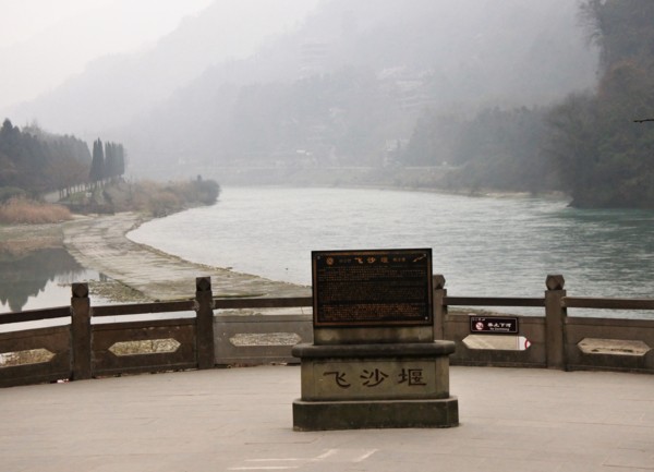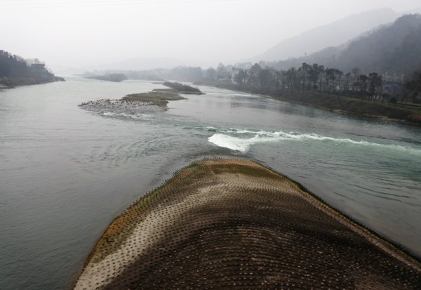 飛沙堰是在分水堤壩中段修建的洩洪道和調節水量的作用。