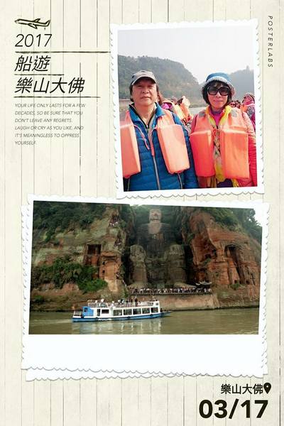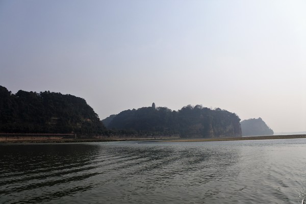 下午~搭乘遊船,從江面上俯瞰樂山大佛,佛的位置位於岷江、青衣江和大渡河三江交會之處的岩壁上,覺得河水相當混濁。