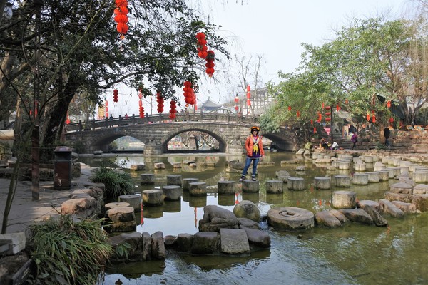 來到黃龍溪古鎮遊覽,9:30到也許是太早或是旅遊淡季,遊客不多,就連營業的店家也不多,進景區入口就有好多賣花冠的婆婆在兜生意,花環是新鮮花做的散發出淡然的花香,入境隨俗,付RMB10帶著花冠慢慢逛,慢慢體味古鎮風情✿✿