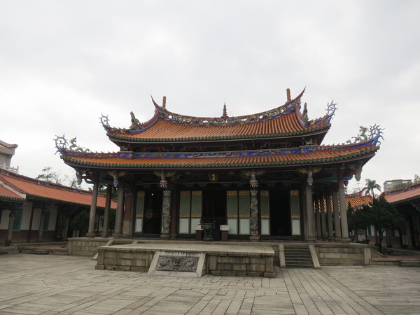 路線:圓山捷運站→台北孔廟→四十四坎街→保安宮→文昌祠→淡水河自行車道→社子島→芝山岩站 。。。。。。。。一群人浩浩蕩蕩的從圓山捷運站出發,穿過馬路,走過小徑般的巷道,來到孔廟。。。多次造訪過孔廟,孔子誕辰紀念日,大成殿前的廣場會舉行祭孔大典,感受到莊嚴肅穆的氣氛,懷有目的學歷史、長知識,讀歷史,學先人的智慧?。。。但~~早已忘到九霄雲外去了!我時常路過、經過、匆匆的走過,不曾在踏入過!!