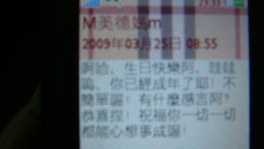20歲生日當天,收到M媽的生日簡訊,結果因為有換了手機,電話簿裡沒她的電話