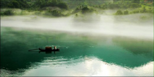 濛煙輕盈地 籠罩夢湖薄薄的輕霧 裊冉之間 想來搖一槳細膩的心情
