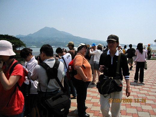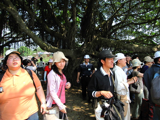 當天淡水很熱鬧,人也非常的多,如果怕跟丟的話,只要跟著一群背著相機的人走就是了,不過當天我還是跟丟了,天呀!我真是天才,想到在出發前老師有說過,如果走散了4點在紅毛城集合,難道真要如老師所說的,到紅毛城集合嗎?不行,如果這樣的話,這一路上我不就失去很多學習的機會了,好不容易才報上名的,這樣不是愧對自己嗎?可能是我走的太快了吧,就在猶豫是否要停下等等看,還是繼續往前走的時候,我看到後方有一堆人,仔細一看沒錯,我終於找到他們了,這下終於可以歸隊,我再也不敢一個人橫衝直撞了。