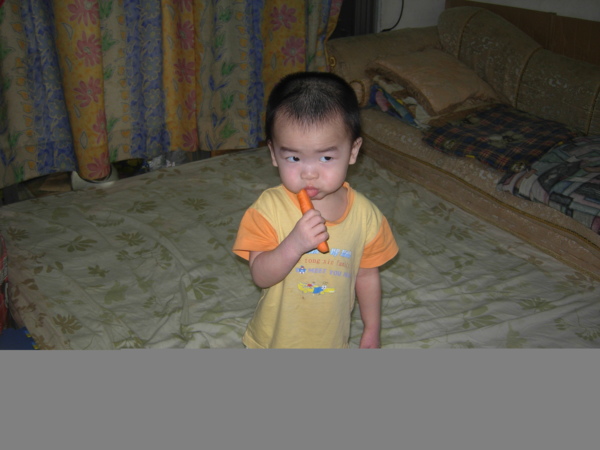 爸爸吃著麵包說:來,紅豆。