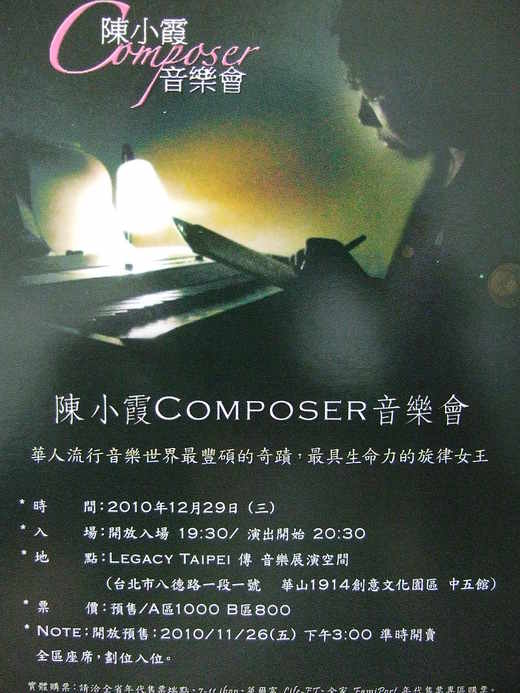 這是我第一次到華山的Legacy,這個地方倒是蠻適合開小型演唱會的。雖然這次演唱會硬體有點配合不到,但聽到陳小霞的演唱會,還是讓我比什麼都開心。