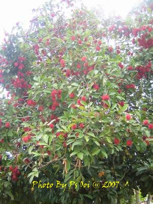 除此之外,沿途中路邊結滿紅紅果實的紅毛丹樹,也讓我們不斷嘆為觀止,紅毛丹是我們本地的一種水果,表面紅紅毛毛的,但里邊的白肉香甜多汁 (也有些品種的表面是綠黃色的)。