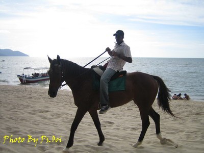 這樣騎著馬在沙灘上"瀟洒走一圈",可要幾十令吉吧?我說我沒興趣,謝謝,也不想問他價錢,因為怕被對方當我是外國遊客給纏住了(我只想一個人靜靜的散散步),可是,這位"印度黑馬王子"還是一直騎著馬在我身邊打轉,一邊向我"搭訕"~想打聽我是從哪里來的遊客?看我無動於衷,最後竟然還說可以免費讓我牽著馬拍照喔...(可是,我不要我不要我不要啦!我只想一個人靜一靜呀!apalah!)