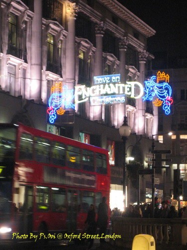 雖然這已不是我第一次在倫敦過聖誕,記得十二年前也曾在倫敦過了一次聖誕節和元旦, 可是當時怕冷,來自熱帶國家的我還是寧願躲在哥哥家里看電視,不曾在平安夜走上街,所以也未曾真正見識英國的聖誕節現場氣氛。可是今天我走在各種膚色皆有之的游客集中區牛津街時,相較於三年前曾去過新加坡烏節路過熱帶聖誕的經驗,我還是覺得新加坡烏節路亞熱帶的聖誕氣息,遠比倫敦的牛津街來得熱鬧也漂亮了許多咯!