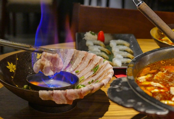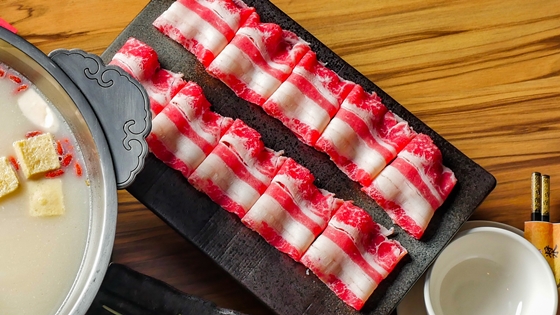 結合美國牛與日本和牛特點,細緻油花恰當分布,僅需微微涮煮即可夾起品嚐,甜度、軟嫩口感與細緻多汁都令人讚嘆!