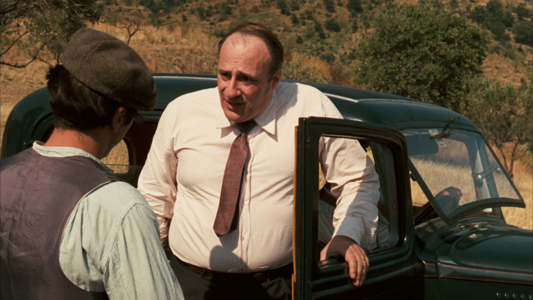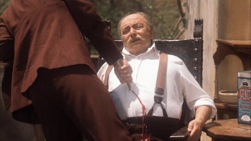 當麥可柯里昂(Michael Corleone)在第一次成為殺手槍殺索拉索(Virgil Sollozzo)及馬克麥可克勞斯基(Captain Mark McCluskey)後,受到叔父湯瑪西諾(Don Tommasino)的照顧躲回西西里老家柯里昂鎮,這個在三集電影中最具代表性的地標,在麥可與湯瑪西諾旗下兩位保鑣卡羅(Calo)與法布利奇歐(Fabrizio)陪同下經過此處,炎熱的天氣不但把三位旅者曬得頭昏,烈焰朝陽把教堂上斑駁凋零的牆壁, 照耀得更顯得無趣與老舊,絲毫沒有一點懷古之美。