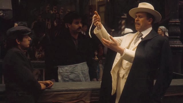 年輕時候的維特柯里昂(Vito Corleone)暗殺黑手黨份子費努奇(Don Fanucci)的片段十分精采。早期小義大利區的建築物相互緊鄰,唐就利用位於高處優勢等待費努奇上鉤,待街上燃放著鞭炮時,躲在一旁的維特,也正將槍口對準這位黑幫老大,平時就十分張狂跋扈的費努奇,此時卻一臉驚慌地看著沾滿白色西裝的鮮血,不停地大聲喊叫。