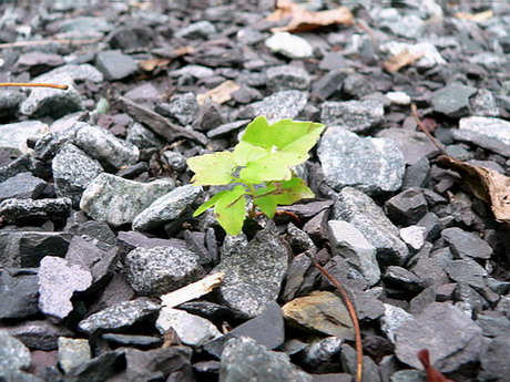 小樹苗啊 ~ 因石子多 , 你還是可以有更多空氣可以做光合作用 ; 快速長大當大樹吧.