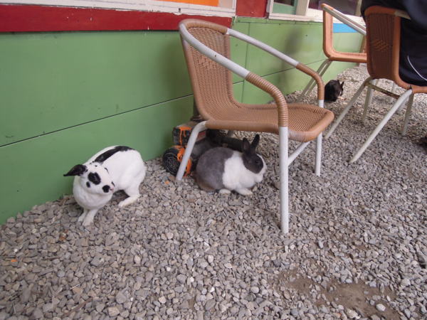 一踏進餐廳就能感受到溫馨的氣氛,馬上就能看到專屬給兔子取暖的小空間,它是沿著戶外至戶內的透明小通道,但因為現在天氣並不寒冷,所以兔子都在外面活動。