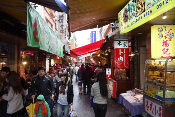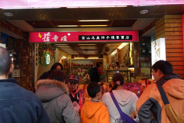 進入金山老街,映入眼簾的是街道兩旁琳瑯滿目的商家及人潮,好不熱鬧!