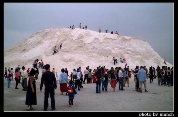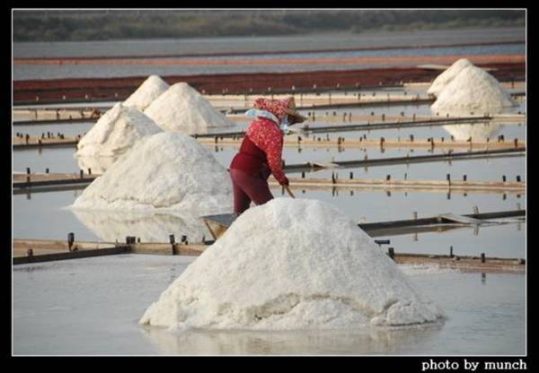 在朋友家休息一晚後,隔天一早我們前往布袋鄉,第一站就來到了鹽田,看著遠處雪白的山峰,我就知道一定又要殺掉我不少底片了,一片白茫茫的場景活像我們站在雪地裡,偶而還能看到這些鹽反射著暖暖的陽光閃閃發亮,這在台灣可是個難得的體驗呢!