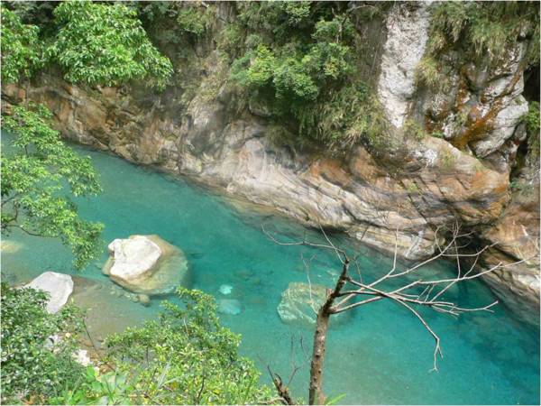 漫步在步道內,感受到岩洞的峻麗及幽美,而眺望著旁邊碧藍清澈見底的溪流, 不禁讚嘆大自然的創造之美...
