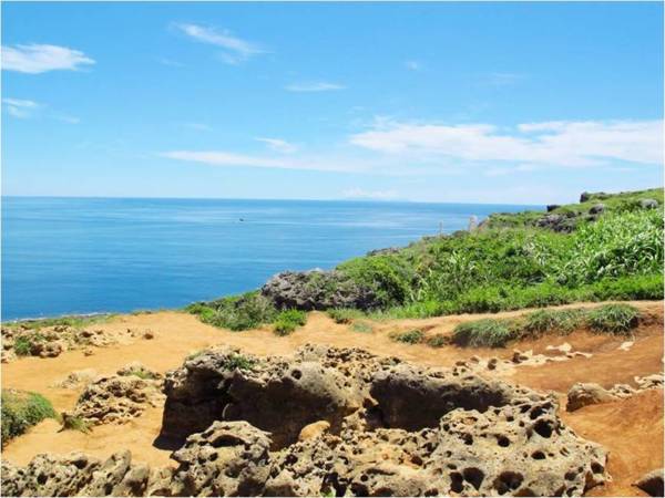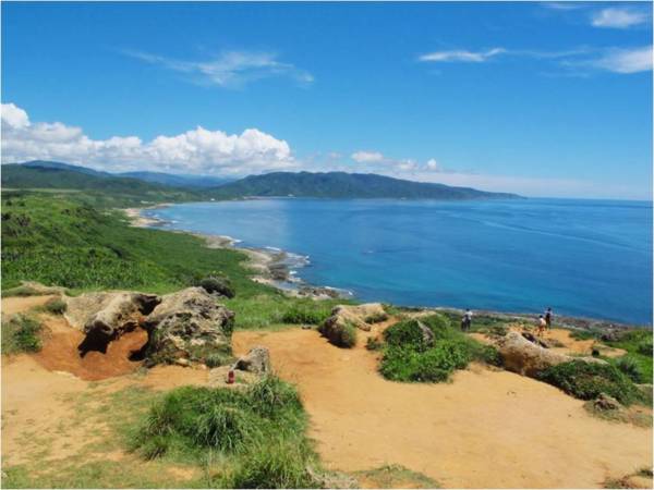 隔天一早照樣不浪費時間整理完出發往鵝鑾鼻方向前進,來到龍磐公園,看!這邊的海水、天空比起南灣更清澈更湛藍,或許是因為人群比較少的關係讓我在這更感到美的境界。地上鋪滿一個洞一個洞的那並不是普通石頭,那是珊瑚礁化石,我們超像科學探索家一直在那觀察。還有那海岸線層次分明,臨靠巴士海峽,望眼邊際有無限延長的感覺。