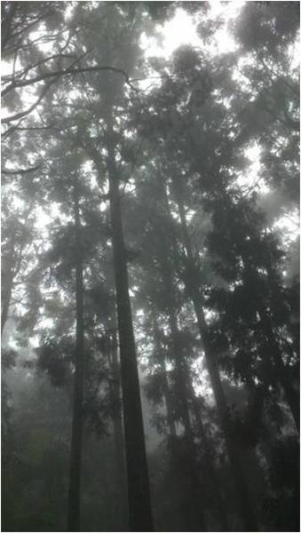 森林遊樂區幅員遼闊,想認真走完全部地方是兩天都走不完的,何況我們只是漫步,走走停停的,哈哈!一會兒天空飄著小雨,霧濛濛的溪頭森林反而給人一種神祕的感覺,有種進入國畫世界的錯覺哦!