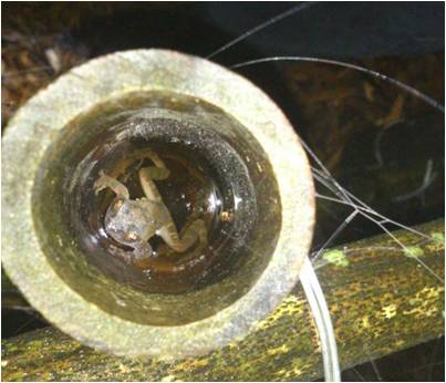 也許是因為剛下過雨,在路旁竹籬笆的竹筒積水處就拍到這些可愛的青蛙!也算是這次來溪頭的驚奇之一。
