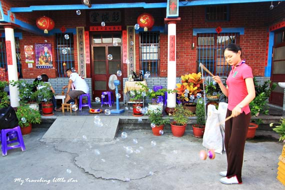 年輕朋友們更是開心的在庭院裡玩童玩、跳房子,不亦樂乎!
