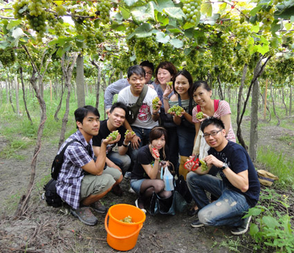 為了讓大家對自然釀造葡萄酒有更深的認識與了解,每年7月,蘭輝都會舉辦~鮮採葡萄&DIY釀酒活動,現在更擴大接受公司、團體的預約參訪活動,大約半日行程。