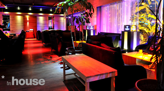 到了夜晚,在同樣簡潔俐落的空間裡,*in house 搖身一變成為燭光點點沙發區為主的Lounge bar,在戶外燈光與桌上燭光映照之下,慵懶氣息四處瀰漫,讓都會男女釋放出另一種越夜越美麗的隨性浪漫。