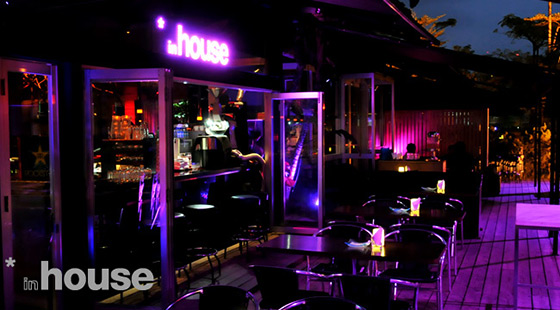 *in house 白天是簡潔明亮的餐廳,雖然位於台北信義計畫區繁華的華納商圈裡,卻有著獨立的院落與寬敞的奢侈空間,自然的日光從餐廳四周的大片玻璃躍動進來,都會上班族在用餐區優閒的用餐或懶懶的躺在舒適的沙發區與三五好友共品下午茶,不僅釋放了日常緊繃的情緒,也在咫尺繁華的信義計畫區找到了難得的寧靜,因此有人說這裡猶如信義區內的地中海島,一點也不為過。