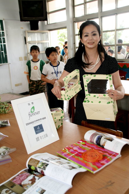 在日本擁有特殊技術的生花專家藤田晃子老師,今天專程蒞校指導中道小學生插花的製作,許多職員也聞訊到場學習,過程認真。她表示,這種生花乾燥處理後,成為展示花束,可以保持很長的時間,在該國已受到喜愛。