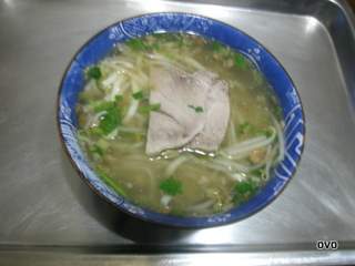 端出前,舖上兩片肉,再入幾許蔥花、香菜,兼邀芹菜切成珠丁灑下,即成就一碗《總匯版》陽春麵。只是如此滿載的陽春麵,倒也過頭了!