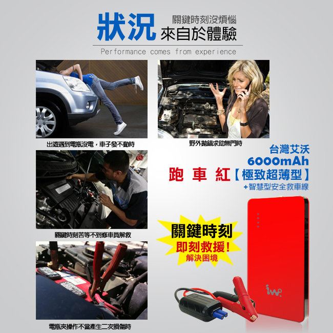 偷偷分享-【艾沃IWO】極致超薄救車行動電源 6000mAh (台灣BSMI認證)