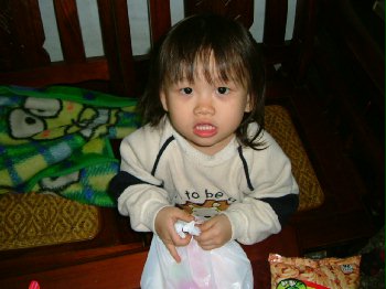 女兒叫婕羚,五歲了,今年才要上中班,她很喜歡吃糖,所以有了幾顆的蛀牙。