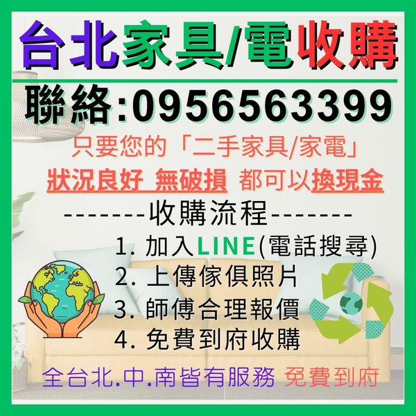 下一則: 大台北地區不用自己花錢搬家 只要請收購廠商來收購/回收 無須破費.家具回收還可以賺現金!0956563399